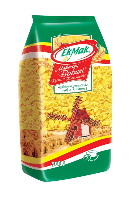Starannie dobrana mąka pszenna z dodatkiem naturalnej przyprawy kurkumy. Bez dodatku sztucznych barwników czy konserwantów, Muszelka Mini to gwarancja autentycznego smaku i wysokiej jakości.